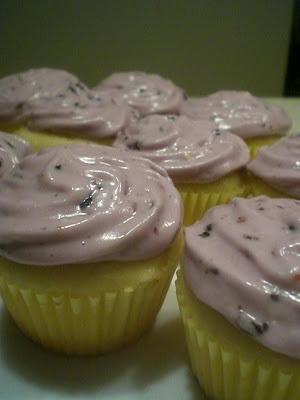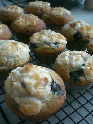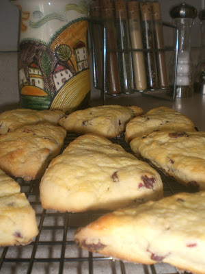 Today has been a really long day in the kitchen, and every recipe was a new one. I had never made scones or biscotti (nor really eaten them, as I like sweeter sweets and don’t drink coffee) but I did manage to make 2 different varieties of each. I made Chocolate Almond Biscotti and an Orange Zest Almond Biscotti, and for the scones I made Cranberry and a Blueberry variety. I also had the time to make both Strawberry Cream Cheese and Blueberry Cream Cheese Muffins (big YUM) and thanks to Lick the Spatula, I tried her Lemony Cupcakes with a Blueberry Icing. To me, the cupcakes were more dense, like a muffin, and not too sweet, so I am considering them muffins, at least for the coffee shop order. They look good, and taste great, though I wish I had been able to get that icing to thicken up enough to let me pipe it on nice and tall. Instead, it was a bit messy and runny, but tasted oh so good. Tomorrow I hope to finish up the coffeeshop order, by making a few more muffins and the lemon bars they requested. I may even make some mini-lemon pies if I can find the time and sneak them in the order.