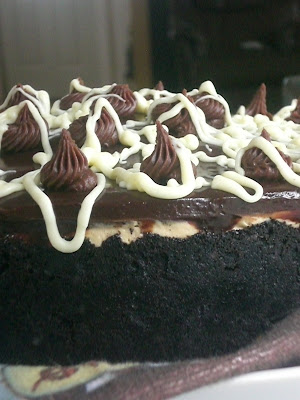 Since I just joined the TWD group last week, I didn’t get the opportunity to make the Peanut Butter Torte with the rest of the group…so, not having a madeleine pan, the torte was my choice. Plus, I had all the in-laws in over the weekend and I wanted to have a nice looking (and great tasting) dessert on hand. This did not disappoint! I won’t bore anyone with the recipe, but I will say what I changed. First, I didn’t use any peanuts or crunchy peanut butter. I personally do not like crunchy food, and the torte was still awesome. Second, I cut back a bit on the coffee, as we just aren’t much into coffee around here. For the ganache, I followed the recipe that Spatulas & Corkscrews suggested and it came out wonderfully…in fact, that will become my “go-to” ganache recipe unless she modifies it in the future!