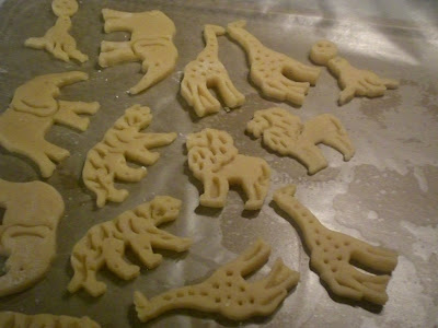 While we were at the beach, I became obsessed with getting to Williams-Sonoma and buying those uber-expensive cookies cutters that only THEY have. They look exactly like the Animal Crackers of yesteryear, though now that I have made them, I can say that while they look great, they do not taste like Animal Carckers. At least not the recipe provided on the WS box. Kind of decieving to have something look so familiar and yet taste so different.