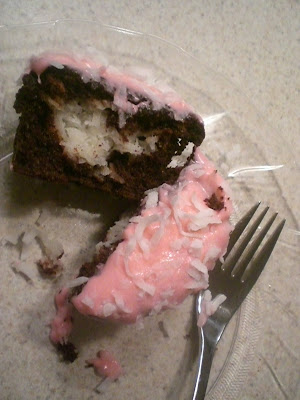 After they cooled, I frosted them with a sticky marshmallow frosting, then scattered the icing with shredded coconut…YUM! I even tinted the frosting pink…who AM I? Where did I come from? Will I ever have a regular sized butt again? Ever?