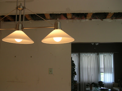 By noon today, when my Dad and I arrived back at the house (I took Seven to my folks house because I didn’t want to have to chase him around during the cutting of the “small” hole) it was literally RAINING in the kitchen. Water was everywhere. The only person I know that is surrounded by this much water is Donna of Spatulas & Corkscrews, but that’s because she lives on a sailboat.