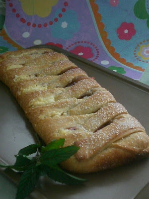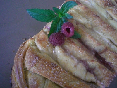 There are a ton of different fillings for the braid, but our challenge was to only use something we made ourselves from scratch. For me, I knew Cream Cheese was my filling of choice, but I decided to jazz it up a bit. I cooked down some fresh red raspberries in a little bit of water, then added a splash of Chambord and a scoop of sugar. For the Cream Cheese, I whipped it after leting it get to room temperature, added 1/3 cup of sugar and a splash of vanilla. After spreading it on my dough, I ran a couple of stripes of the raspberry on top of it and began my braid.
