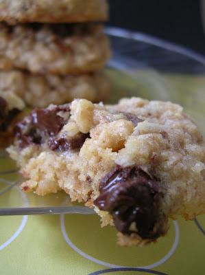 I would like to be able to tell you how these hold up after several days, but I can’t. Many were eaten while still hot enough to scald my tongue. Many were just eaten in general. Most are visible through my ever tightening blue jeans, and these are my fat jeans, people. These cookies are the devil. Or hippies are. Maybe it is the hippies. You see, we call the Whole Foods store the Hippy Market. Tree huggers and granola eaters go there. I’ll bet one of those hippies put some crack in that stash of granola I got.