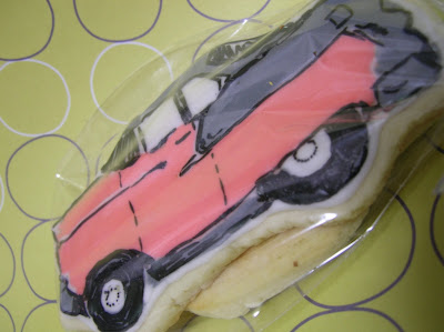 Next up was Autumn Shapes. And Halloween Shapes. And wedding shapes for a friends upcoming Honeymoon Night. And then last night, ’55 Chevy shapes for my Dad to take and eat during his Car Show this weekend. While they didn’t turn out as great as I had hoped, I was decorating them in the middle of the night and mixing a lot of colors and piping it just didn’t register high on the to-do list. So it is what it is.