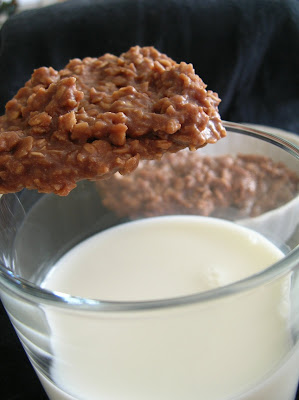When the mixture is ready, remove from heat and add remaining ingredients, stirring quickly before the cookies set up. Drop by tablespoon fulls onto parchment or wax paper and allow to cool.