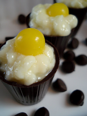 As you can see I piped a little of the custard into some tiny little chocolate cups and topped it with a LemonHead. I also made some in a little souffle cup and threw some sugar on top for an added crunch. I just felt like it needed something to actually chew on, didn’t you?