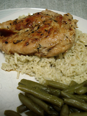 For our “Stay At Home Meal” this week we have Orange Glazed Chicken with Herbed Rice and Green Beans. Not that we don’t stay home for every meal – well, this is the meal we are eating instead of paying high dollar prices at a restaurant. The meal we make at home to keep a little extra cash in our pockets, I guess you could say.