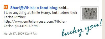 Now, for the moment you have all been waiting for…the winner of the Emile Henry Pie Dish! Thanks to everyone who entered – I wish all of you could have won. But – only one could win and that was…